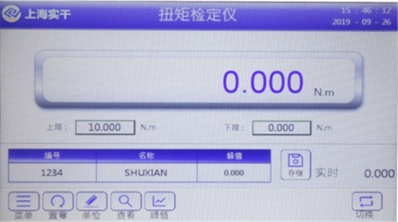 a、單位鍵,當前單位不能測試要求時,可對著單位位置單擊,依次顯示單位(N·m、kgf·cm、lbf·in、lbf·ft),可輪流切換。